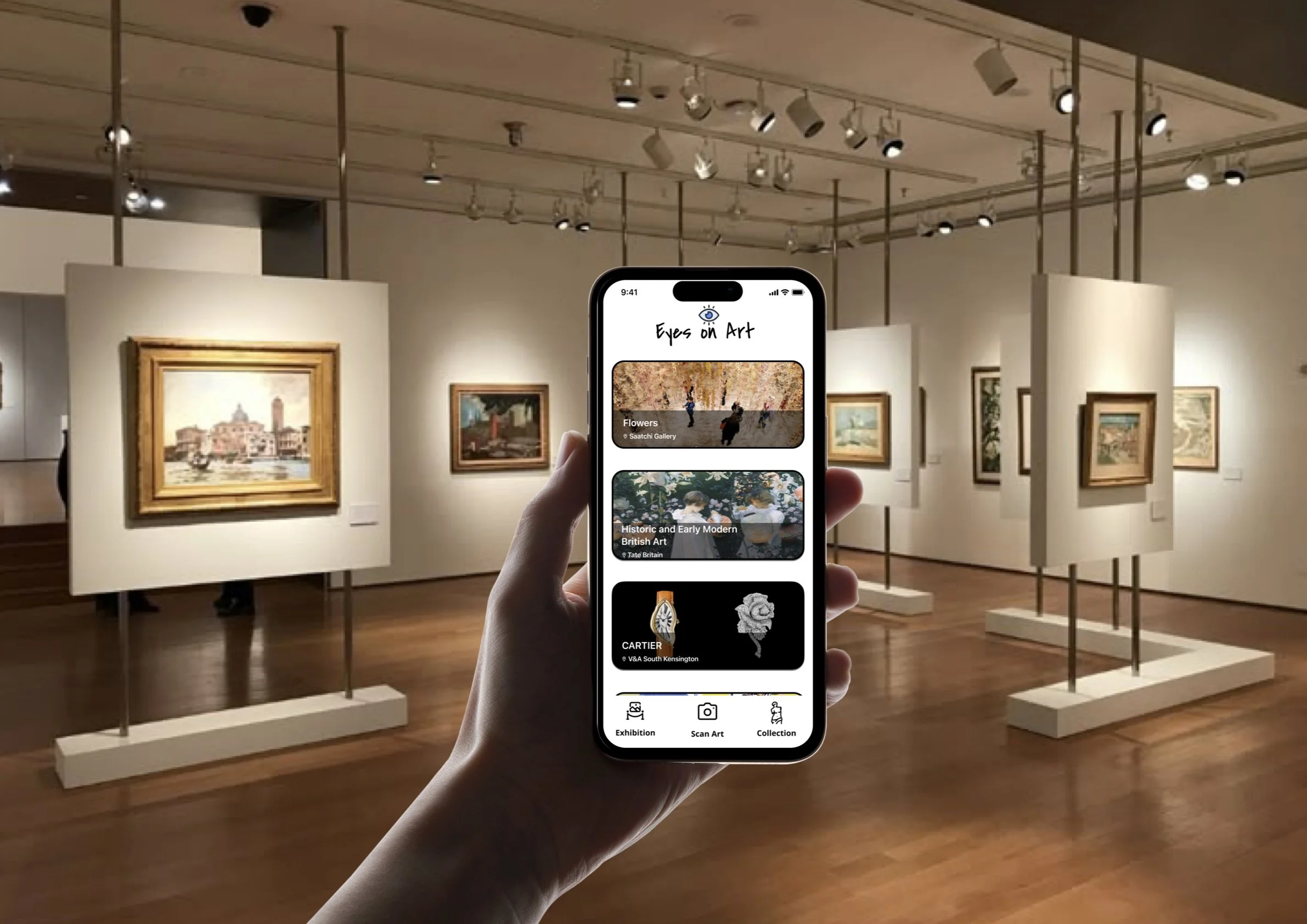 Eyes on Art App is a digital platform that lets you discover and explore global artworks, scan and identify pieces in real life using AI, and connect with artists through curated exhibitions.