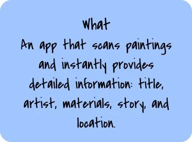 • Instant Art Recognition Scan any painting to identify the title, artist, and creation date in seconds.
