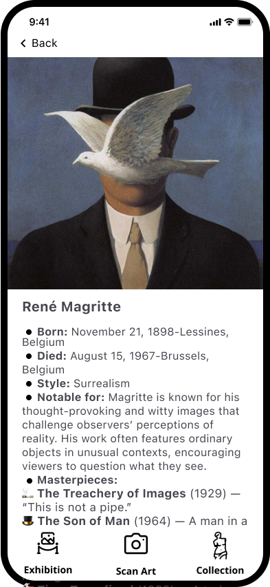• Engagement → turning passive viewing into active discovery, encouraging users to connect more deeply with art.